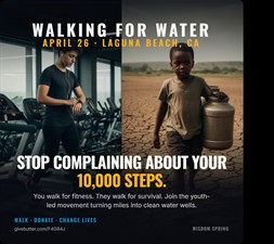 Join us to Walk for Water on Saturday, April 26, on the LBHS track. This annual walk-a-thon is a 100% student-led event as part of the Walking for Water Club at Lagina Beach High School hrough the nonprofit Wisdom Spring.